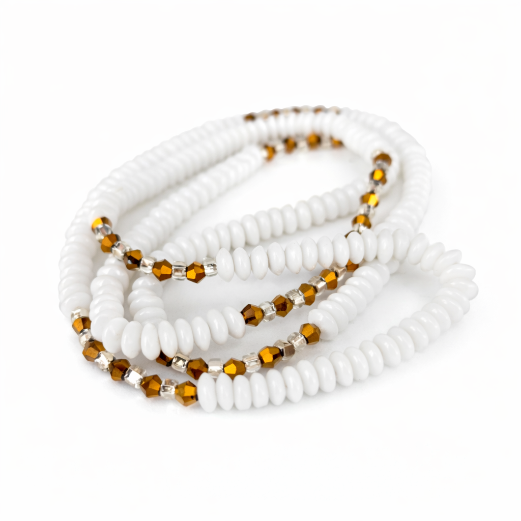 Les bayas, aussi appelés bijoux de hanche africains, sont des ornements traditionnels portés autour de la taille depuis des générations en Afrique. Réalisés à partir de perles soigneusement sélectionnées, les bayas subliment les courbes féminines tout en symbolisant féminité, sensualité, élégance et confiance en soi.