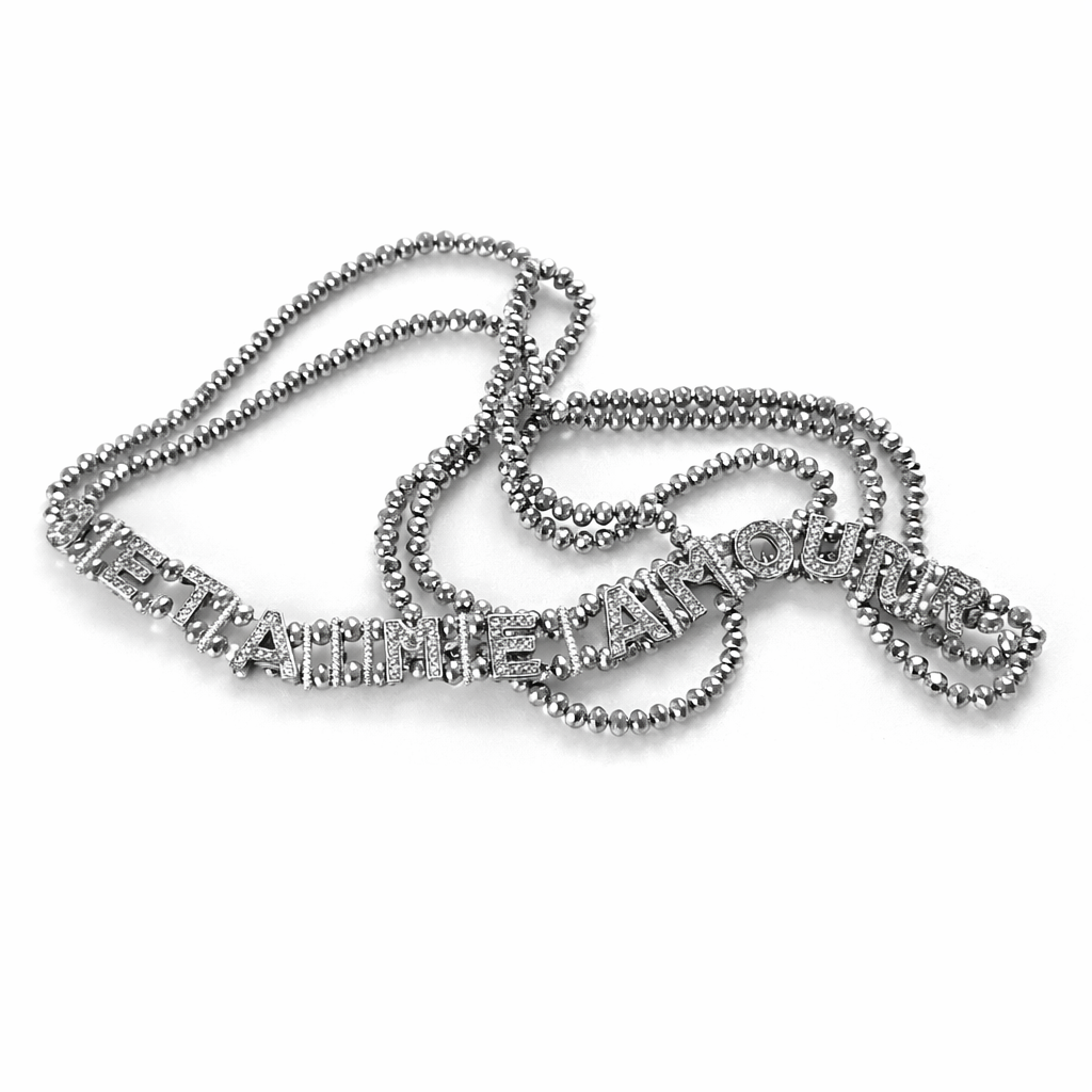 Évitez le contact prolongé avec l’eau, le parfum, les huiles et les produits cosmétiques afin de préserver l’éclat des perles et des lettres.